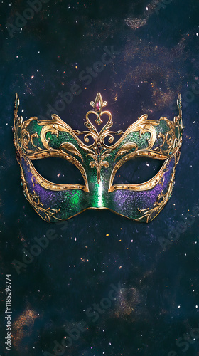 mask, mardi gras, brazilian, festival, carnival, mardi, festive, starry, night, gold, colourful, celebration, party, glamour, sparkle, ornate, decorative, masquerade, extravagance, luxury, vibrant, event, artistic, elegant, cultural, tradition, dazzling, enchanting, celestial, jewellery, showcase, allure, costume, gala, lavish, glistering, star, cosmic, universe, opulent, vertical, art, illustration