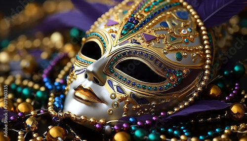 decoration, mask, disguise, culture, celebration, mardi gras, costume, fashion, human face, elegance, luxury, gold, shiny, glamour, party, beauty, ornate, feather, mystery, jewellery, event, souvenir, bead, woman, clothing, glistering, parade, colours, purple, fun, bright, vibrant color, portrait, necklace, halloween, tradition