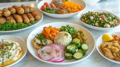 Colorful Mediterranean Feast with Fresh Ingredients and Dishes