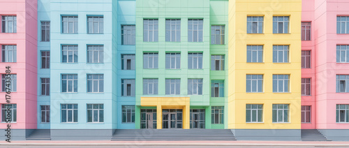 colourful, modern, building, pastel, colours, urban, architecture, large, window, entrance, step, design, exterior, daylight, structure, facades, contemporary, city, housing, blueprint, aesthetic, layout, environment, welcoming, home, school, space, community, location, trend, scenery, construction, visual, urbanism, facility, area, planning, attracted