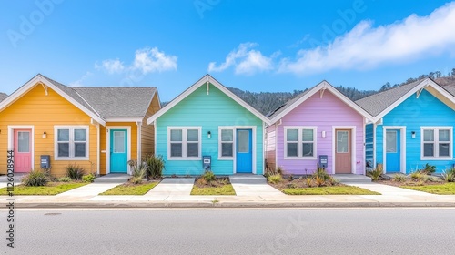 Colorful Modern Townhouses Suburban Street Residential Architecture