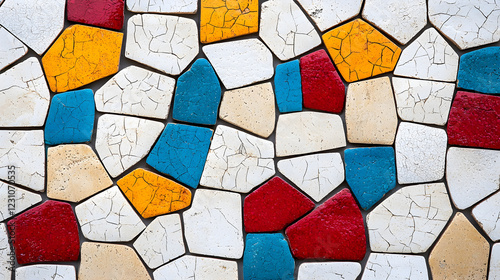 mosaic, tile, colours, pattern, texture, artistic, design, red, yellow, blue, white, cracked, surface, decoration, background, vibrant, hand-made, geometry, abstract, craftsmanship, art, wall, floor, colourful, material, creative, shape, arrangement, aesthetic, interior, unique, bright, palette, visual, rustic, style, detail, artistry, modern, traditional, home, space, element, attractive, lively, appearance, build, conformation