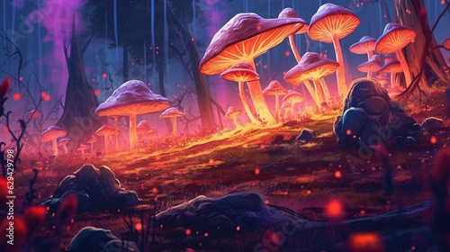 mushroom, magical, forest, fungal, glowing, colourful, fantasy, nature, background, glow, magic, illustration, artwork, wallpaper, painting, art, imagination, concept, landscape, beautiful, mystical, night, light, fairy, fairy tale, dark, grass, macro, moss, autumn, closeup, hallucinogen, colours, dream, mysterious, mystery, mystic, surreal, fluorescent, bright, natural, plant, energy, fantastic, scene, whimsical, witchcraft, abstract, wood