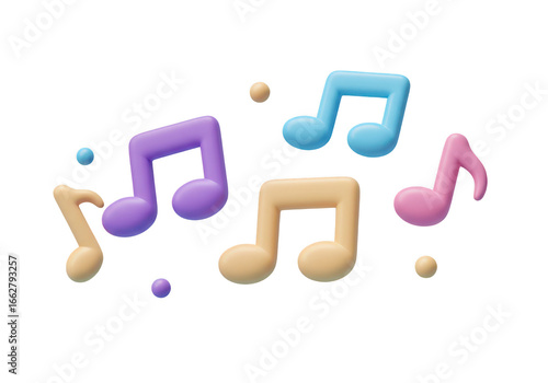 Colorful musical notes and dots isolated on transparent background