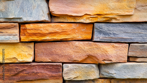 Colorful Natural Stone Wall with Varied Textures and Tones for Architectural Design Elements