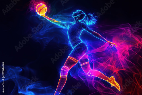 Colorful Neon Art of Volleyball Player in Dynamic Jump Action