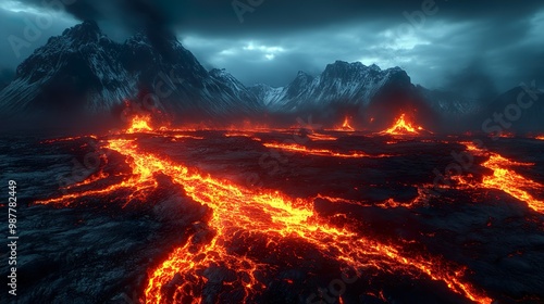 Colorful neon auroras light up dark peaks with vibrant design picture