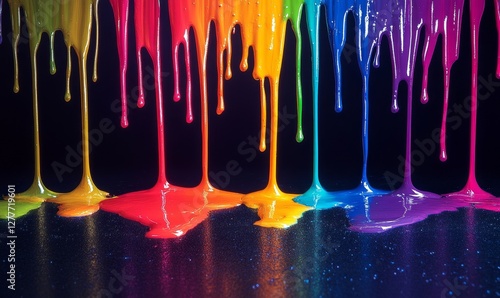 Colorful Neon Paint Drips on Dark Surface, Generative AI
