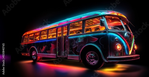 colourful, bus, travel, auto, automobile, driving, futuristic, journey, neon, transport, trip, design, technology, modern, light, night, neon light, tour tourism, transportation, tour, illustration, road, tour tourism