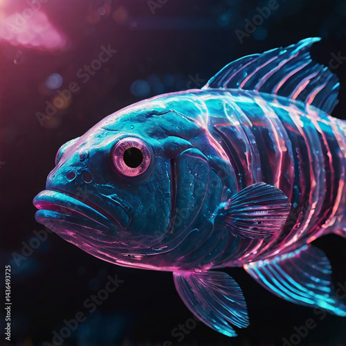 colorful, neon, RGB fish with paint splatters on a black background (generative AI) tropical fish in a glass, goldenfish full color, goldenfish black background Vibrant street art featuring a stylize