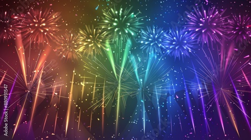 pride, festival, fireworks, rainbow, night time, celebration, colourful, vibrant, sparkle, open space, promotional, event, night sky, holiday, community, diversity, joy, festivity, design, poster, card, graphic, background, spark, explosion, festive season, abstract, artistic, bursting, glowing, sparkling, majestic