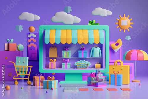 Colorful Online Shopping Experience: Vibrant E-Commerce Storefront with Digital Good