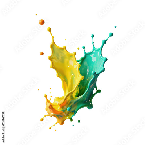 Colorful Paint Splash in Yellow and Cyan 3D Render
