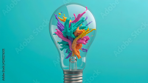 Colorful Paint Splash Inside Light Bulb Representing Creativity and Innovation in Art and Design on Vibrant Background