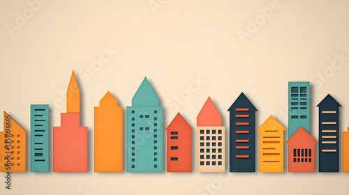 Colorful Paper Cutout City Skyline Design for Creative Projects