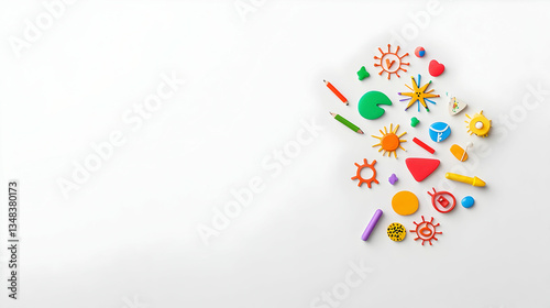 colourful, paper, shape, geometric, art, design, creative, composition, bright, many-coloured, pattern, abstract, element, textured, background, white, pastel, object, sun, dot, circle, triangle, square, crayons, crayons, education, fun, playful, vivid colors