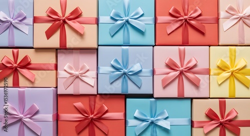 Colorful pattern of gift boxes with bows