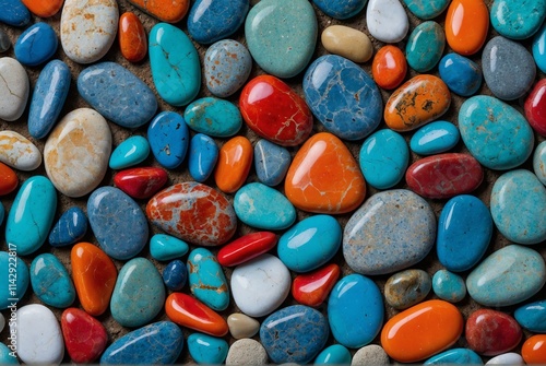 pebble, stone, colours, pattern, vibrant, blue, red, orange, texture, landscape, nature, rock, decoration, background, shiny, smooth, surface, collection, earth, mineral, outdoors, art, decor, beach, gravel, arrangement, natural
