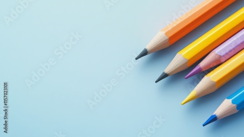 Colorful pencils on a blue background.
