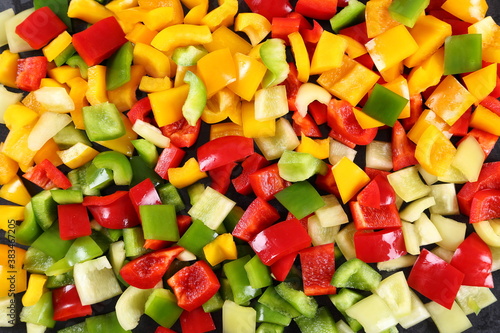 pepper, pepper, bell pepper, bell, paprika, capsicum, red, yellow, green, fresh, organic, background, dark, closeup, colours, colourful, cookery, eat, food, cooking, freshness, fruit, vegetable, vegetarian, vegan, harvest, healthy, ingredient, nourishment, raw, tasty, vegetable, slice, diced