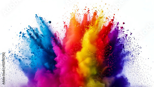 colorful pigment powder, explosion of colored powder exploding isolated on white background