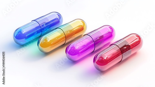 pill, capsule, medicine, health, health care, medicals, pharmacy, drug, medication, treatment, make well, remedy, drugged, tablet, prescription, vitamin, supplement, pharmaceutical, semitransparent, shiny, blue, yellow, purple, red, white background, row, aligned, closeup, studio shot, disease, wellness, recovery, science, research, pharmacology, innovation, synthetic, relief, bright