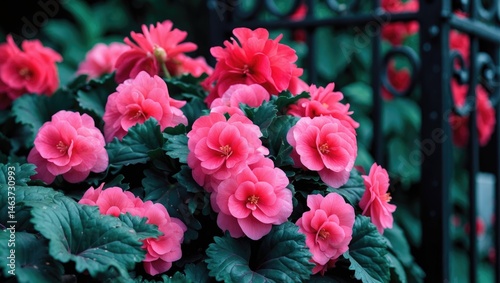 Colorful pink and red begonia flowers with a vibrant nature backdrop