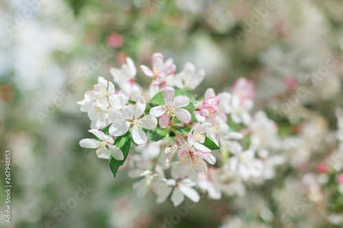 Colorful pink bud of flowers in blossom on spring tree in park. Nature, summer, macro, flowers concept