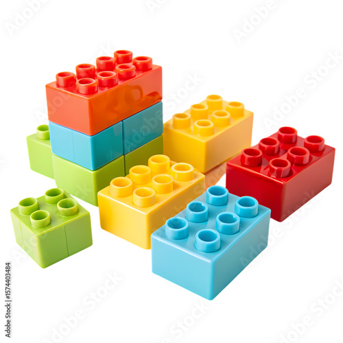 Colorful Plastic Building Blocks Arranged in a Playful Composition isolated on transparent baackground
