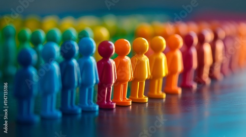 Colorful plastic figures standing in a gradient line, showcasing a vibrant spectrum of hues.