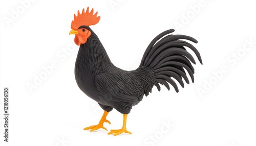 rooster, figurine, plastic, colourful, animal, toy, poultry, black, orange, bright, farm, model, creative, design, decoration, nature, wildlife, art, playful, fun, collectable, craftsmanship, display, cute, whimsical, character, vibrant, detailed, representation, farmyard, domestic, pet, hobby, craft, artistic, unique, imaginative, handcraft