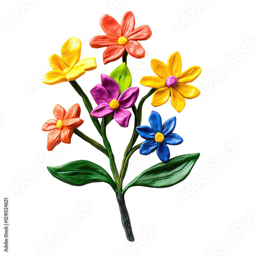 Colorful Playdough Flowers on Solid transparent background for Creative Projects and Educational Use