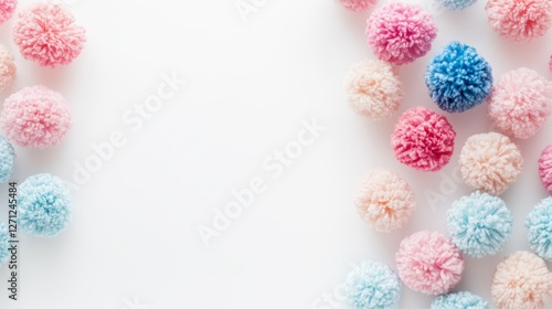 Colorful Pom-Poms on a White Background with Ample Copy Space for Design
