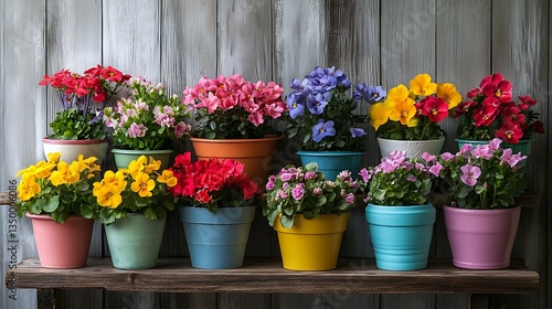 flower, potted, plant, colourful, spring, summer, bloom, garden, decor, home, decorating, arrangement, rustic, wooden, shelf, patio, balcony, indoor, vibrant, pretty, bouquet, pottery, bloom, decoration, nature, design, floral, houseplant, springtime, beautiful, charming