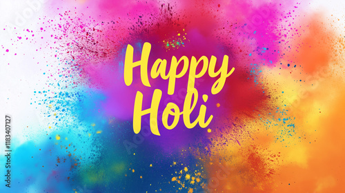Colorful powder background with text "Happy Holi", the festival of colors. Happy Hindu Indian holiday celebration greeting card vector illustration design for web banners, posters, and print advertisi