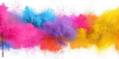 explosion, powder, colourful, vibrant, abstract, bright, colours, pink, blue, purple, orange, yellow, red, many-coloured, texture, artistic, dynamic, motion, burst, paint, cloud, powdery, spectral, high-coloured, design, background, isolated, creative, pattern, art, white, photo, explosive