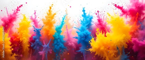 colorful rainbow holi paint color powder explosion isolated white wide panorama background