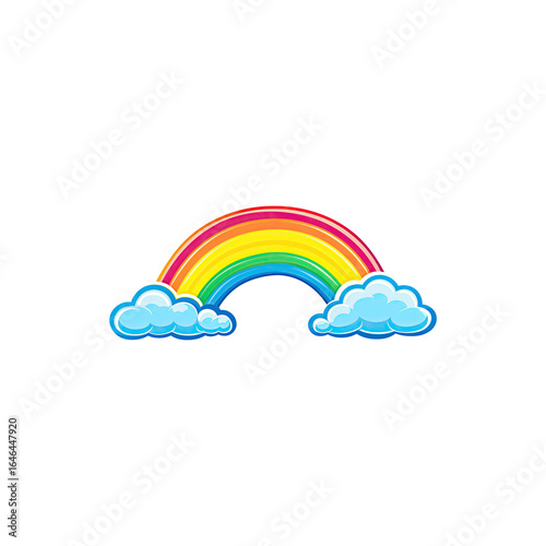 Colorful Rainbow with Fluffy White Clouds isolated on white background