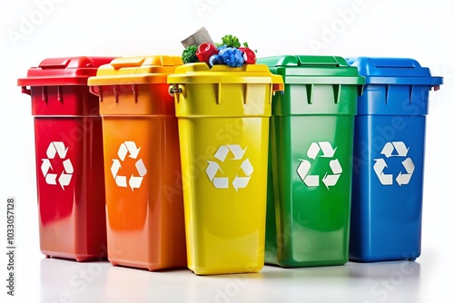 Colorful Recycle Bins Isolated for Waste Management, Reduce, Reuse, and Recycle Awareness