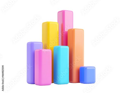 Colorful rendered bar chart with varying heights creates a vibrant and dynamic visual representation of data and statistics.