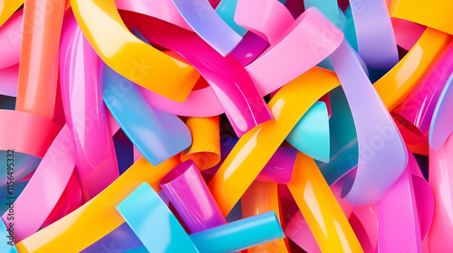 Colorful ribbons and streamers with vibrant balloons and decorations creating a festive party background