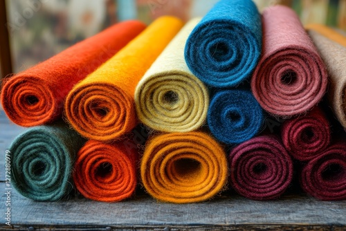 Colorful Rolled Felt Fabric Swatches Textile Samples Artisan Crafts Vivid Hues Texture Background