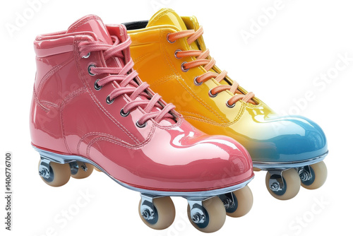 roller, skate, pink, yellow, colours, glossy, finish, laced, shiny, wheel, sporty, gear, retro, style, playful, design, footwear, activity, sk8, leisure, exercise, fun, colourful, fashion, trendy, accessory, recreation, youth, culture, hobby, summer, athletic, movement, balancing, equipment, personalization, art, statement, joy, joyfulness, performance, entertainment