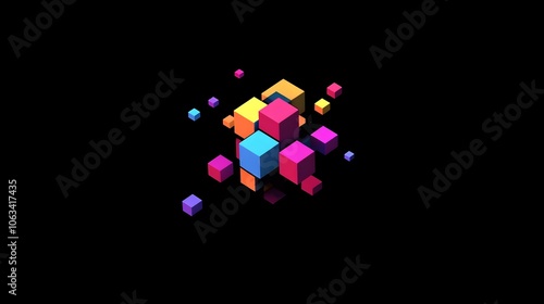 Colorful Rotating 3D Cubes Loading Animation on Black Background