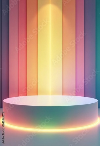 colourful, round, dais, racked, platform, product, showing, display, presentation, showcase