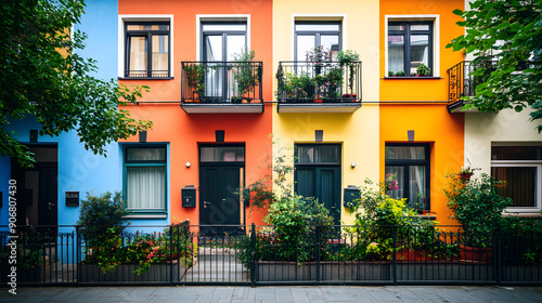 charming, vibrant, urban, residential, architecture, exterior, greenery, neighbourhood, city, quaint, picturesque, home, facades, terrace, window, balcony, urban living, lively