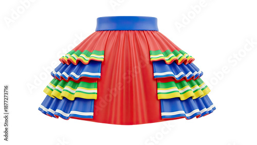 skirt, ruffled, layered, striped, colourful, clothing, fashion, apparel, red, blue, green, yellow, white, garment, waistband, tiered, dance, costume, festive, traditional, ethnic, celebration, carnival, fabric, textile, design, style, decoration, pattern, vibrant, bold, creative