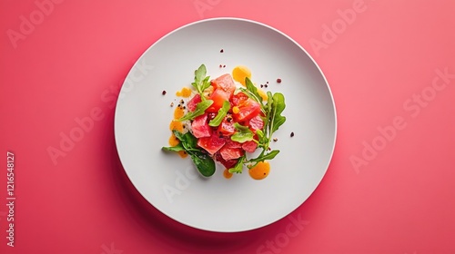 Colorful salad arrangement featuring fresh ingredients on vibran