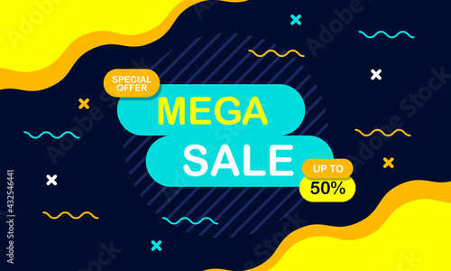 Colorful sale banner background with wave shape. Abstract colorful flat background.
