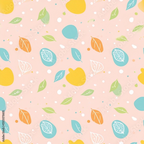 seamless, pattern, colourful, design, background, leaf, circle, dot, nature, abstract, playful, fun, illustration, decoration, artistic, cheerful, vibrant, texture, shape, concept, textile, wallpaper, surface, digital, element, creative, graphic, aesthetic, modern, trendy, organic, simple, light, style, visual, freshness, art, print, layout, beauty, ecology, environment, colours, unique, inspiration